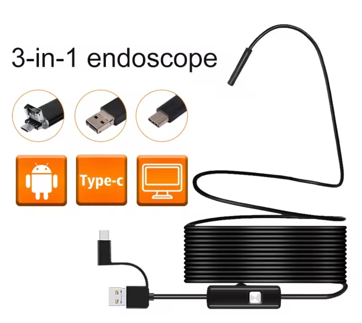 Cámara Endoscópica Android Celular Pc Tablet 3en1 Usb – Micro Usb y Tipo C 5mts