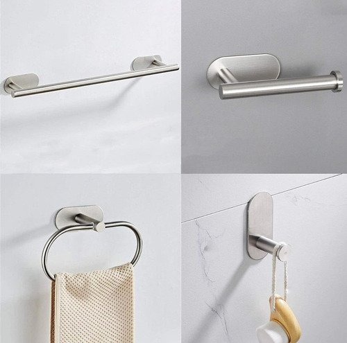 Juego Accesorios Baño 4 Piezas Acero Inox Adhesivos
