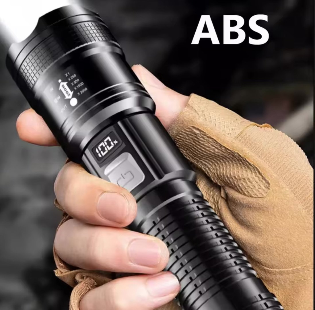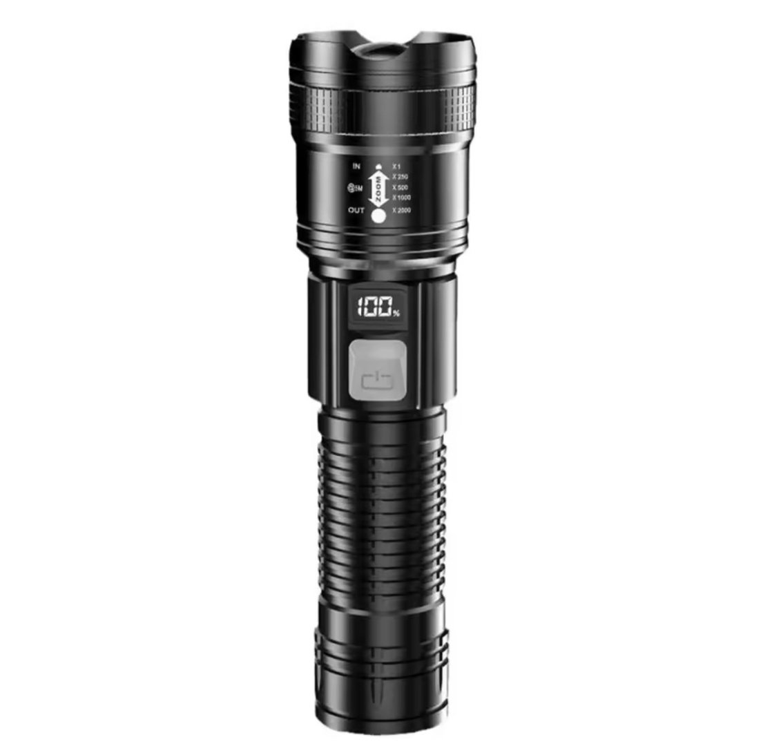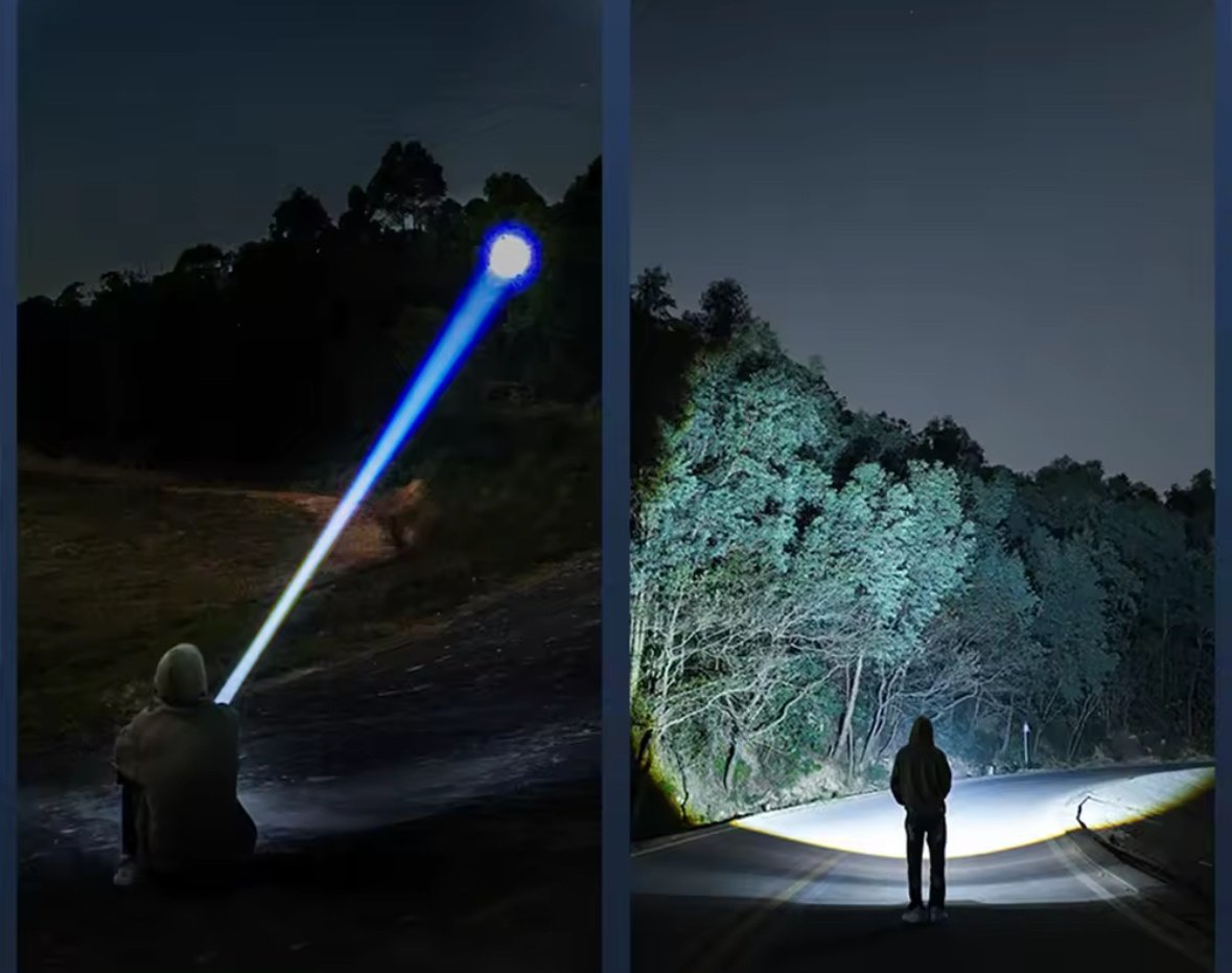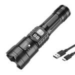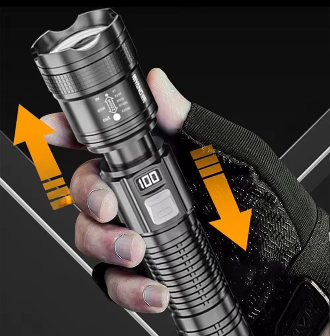 Linterna táctica LED de largo alcance con zoom telescópico que proporciona una luz super brillante e iluminación de largo alcance.