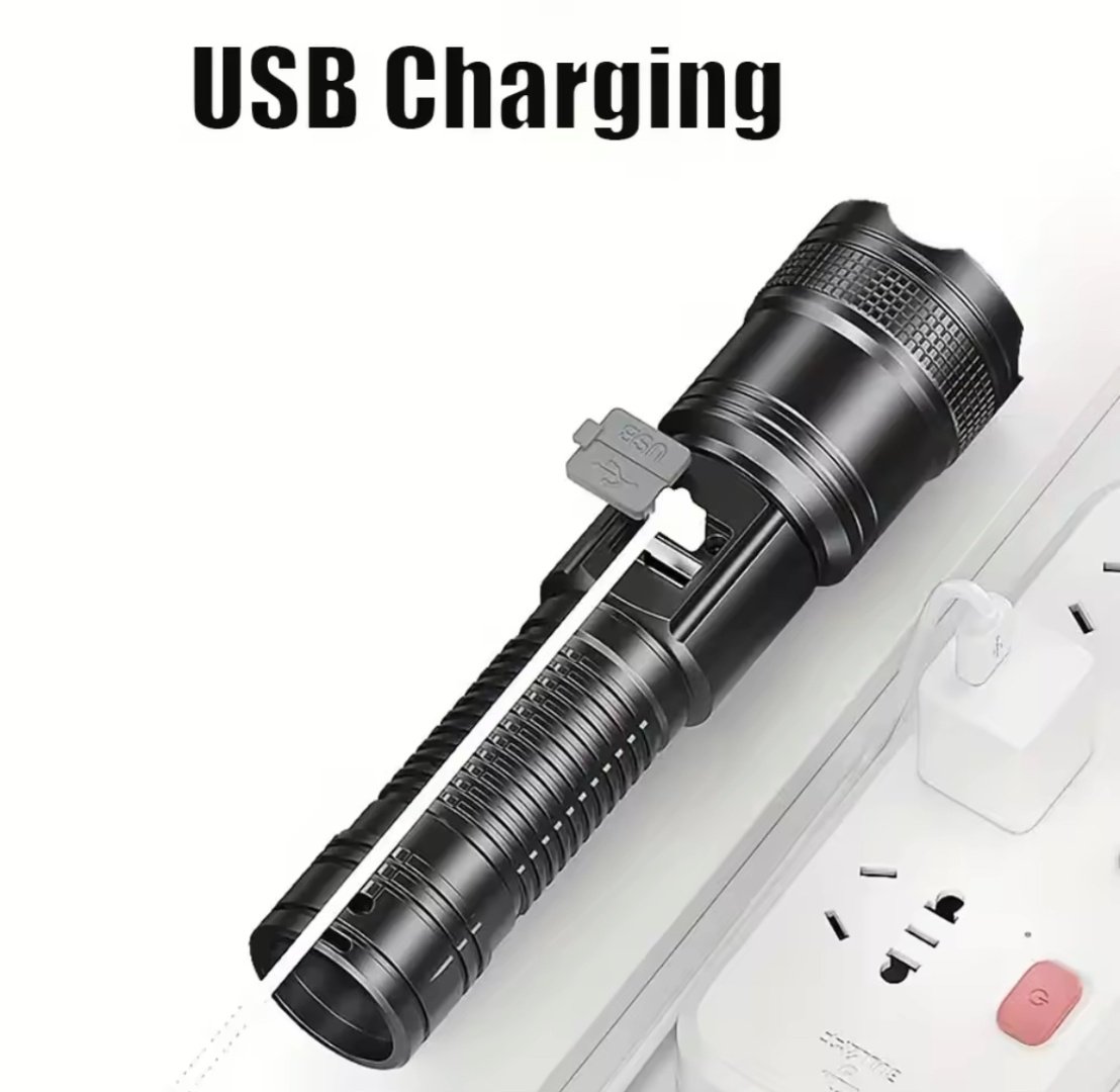 Linterna Led Super Potente Táctica Recargable Usb Con Zoom Brillo Alto Caza Camping