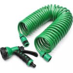 Manguera telescópica, estas mangueras enrolladas de jardín se retractan rápidamente para un almacenamiento fácil y compacto.
