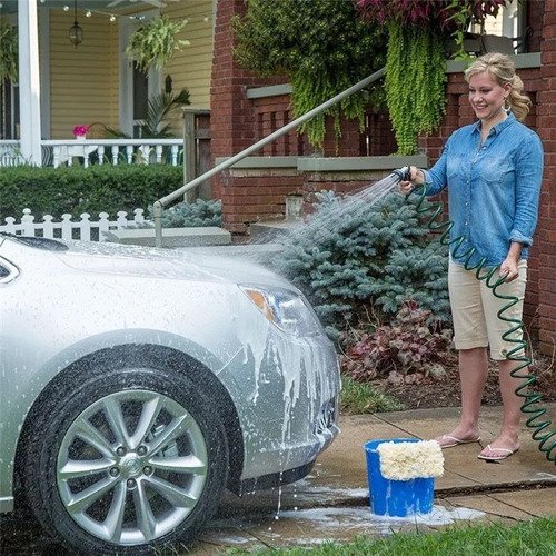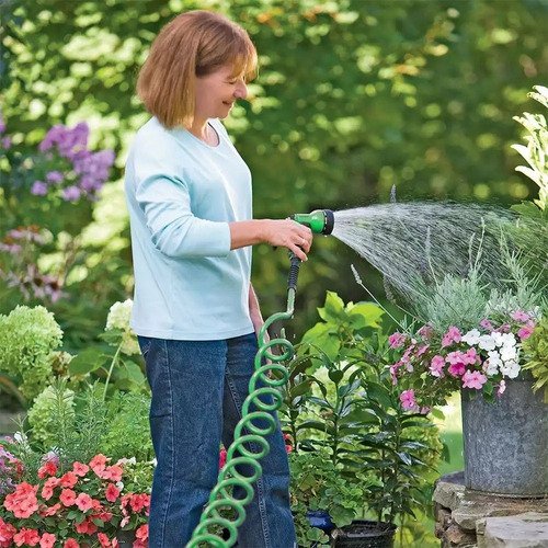 1x Manguera de jardín enrollada con boquilla de pulverización