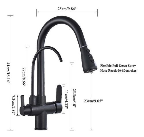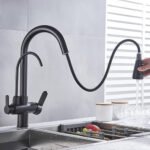 Grifo para fregadero de cocina, accesorio con conexión para filtro para el agua, rotación de 360 grados, caño extraíble y disponible en color negro mate