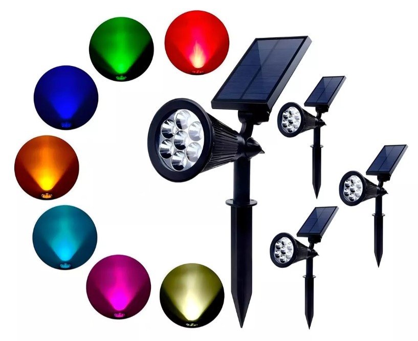 Pack x 4 Lampara Foco Solar Jardín Pincho Estaca Exterior Luz Led Colores Rgb