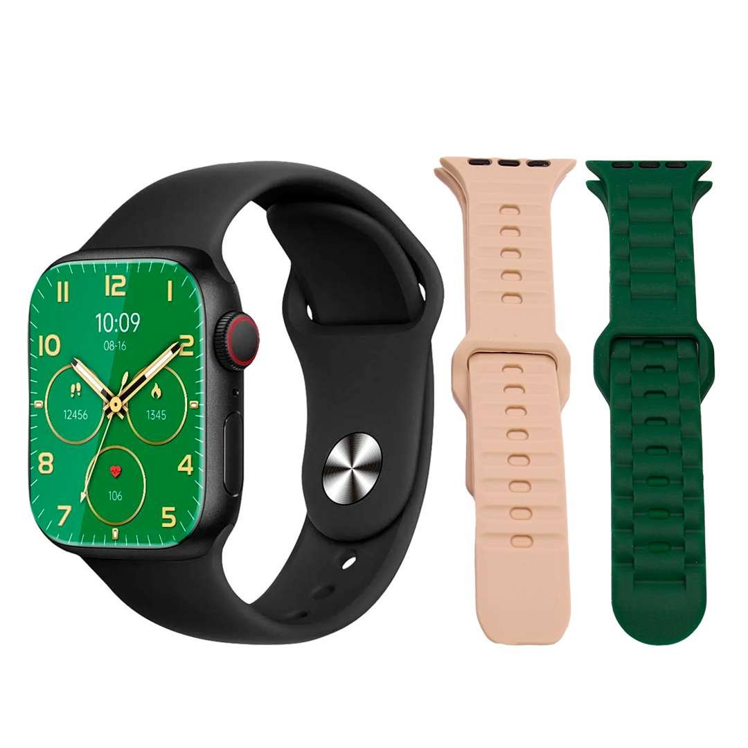 - 📦 Incluye: reloj, cable de carga USB, 3 mallas intercambiables, manual de usuario